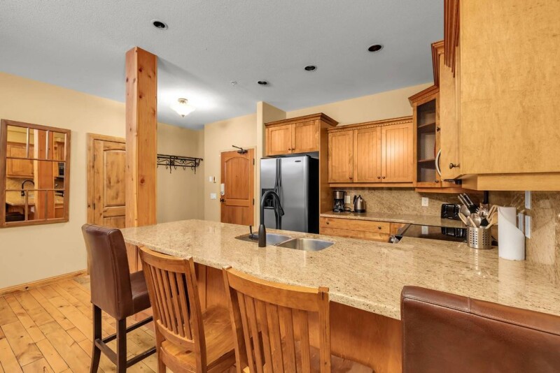 Welcome to this never been on the market, spectacular unit at The Aspens. Walk in and be greeted by the bright and welcoming floorplan featuring views of the Monashee Mountains. Relax and entertain in the spacious living area with cozy gas fireplace surrounded by brick and a built-in wine rack and cooler for apres ski. The kitchen features stainless steal appliances, granite countertops, and eat-up bar. Unwind after a day on the slopes in the private hot tub overlooking the view. Good sized bedrooms with plenty of space for the whole family. Other features include slate flooring, hardwood floors, spacious entryway, and plenty of windows to enjoy the view and to allow in tons of natural light. This unit is completely turn-key and offers the best and highly coveted ski-in/ski-out access to six lifts. Laundry in unit, heated underground parking, and storage locker for extra convenience. Use this mountain retreat as a family friendly vacation home or create income by using as a rental investment (no rental restrictions) Well run strata with full-time building manager on site. Live where you play! Exempt from Foreign Buyer Ban, Foreign buyers tax, speculation tax, empty home tax, and short term rental ban.