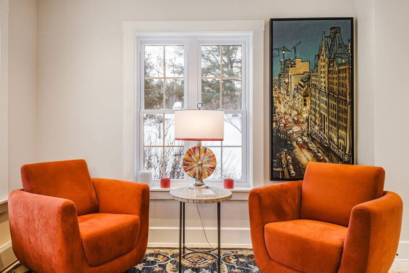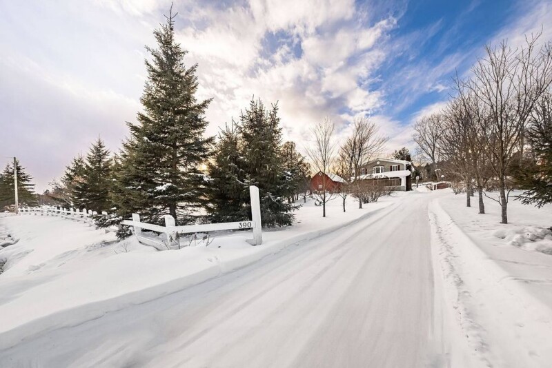 Exceptional Estate! Discover this meticulously renovated residence designed to provide unmatched comfort and peace of mind. This unique property stands out with its irresistible charm and breathtaking views of the surrounding mountains. Nestled on over 21 acres of land, the property is surrounded by mature trees and a stunning meadow, ensuring both privacy and spectacular vistas. In addition to the elegant main residence, enjoy a detached double garage with a beautiful mezzanine, as well as a spacious barn offering endless possibilities. A true oasis waiting to be discovered!.
