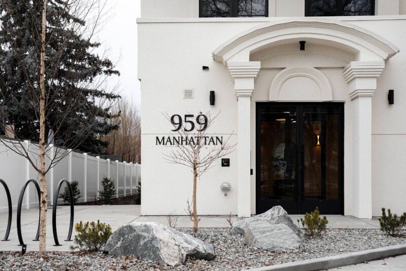 Sophisticated. Timeless. Quality. An exceptional offering; the last remaining residence available in this concrete boutique low rise complex in Downtown Kelowna's developing North End. Manhattan Point is esteemed for its waterfront proximity, lake front boardwalks and canopied streetscapes taking you to many of the best established and upcoming restaurants, cafes, entertainment venues and parks. Overlooking Jack Brow Park, your corner location that does not share any walls with others, you have the utmost privacy and quiet luxury to experience. Upon entering, one can appreciate the accessible features of an elevator, no threshold doorways and curbless showers. With soaring 11'4" ceilings and overheight black mullion windows, a stunning canvas awaits. The inviting open floorplan is flanked on wall with premium cabinets, brushed gold hardware and faucets, silestone counters and backsplash, and a contrasting large oak island. The bedrooms are separated by the ensuite bath and walkin closet of the primary bedroom, and the in suite washer/dryer and full bath off the second bedroom. Your paddleboard will be safely stored in your storage locker while your bike can be stored with your secure enclosed stall in the parkade, which is EV ready (charges for a fee). The onsite gym is perfect for a quick cardio when not hiking nearby Knox Mountain. A secure, dedicated mailroom provides enclosed lockers for your incoming parcels. Exceptional construction. Beautiful living. Vibrant community.