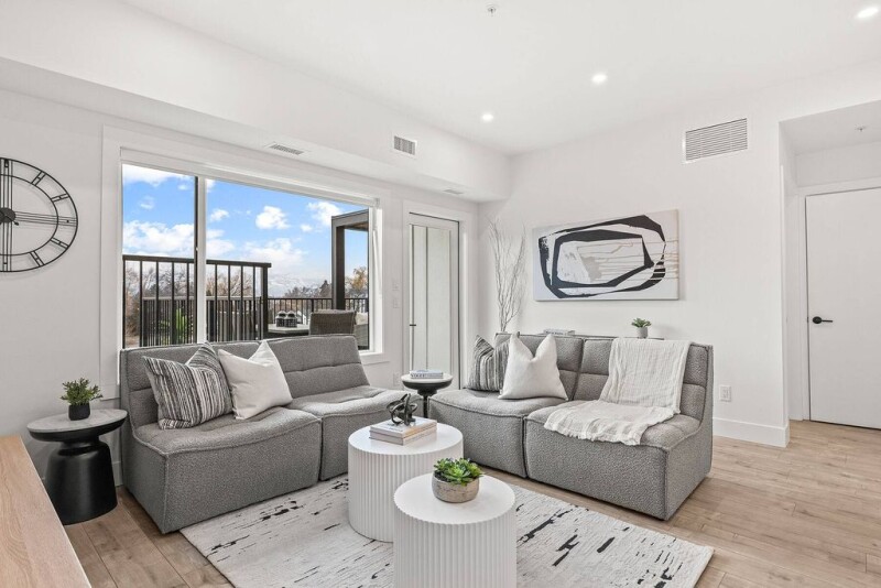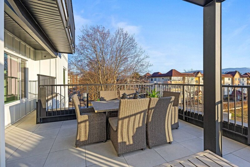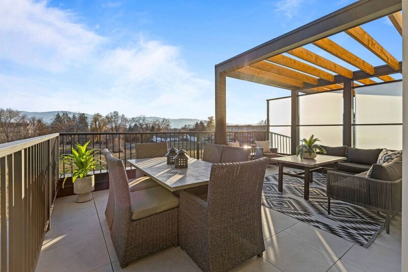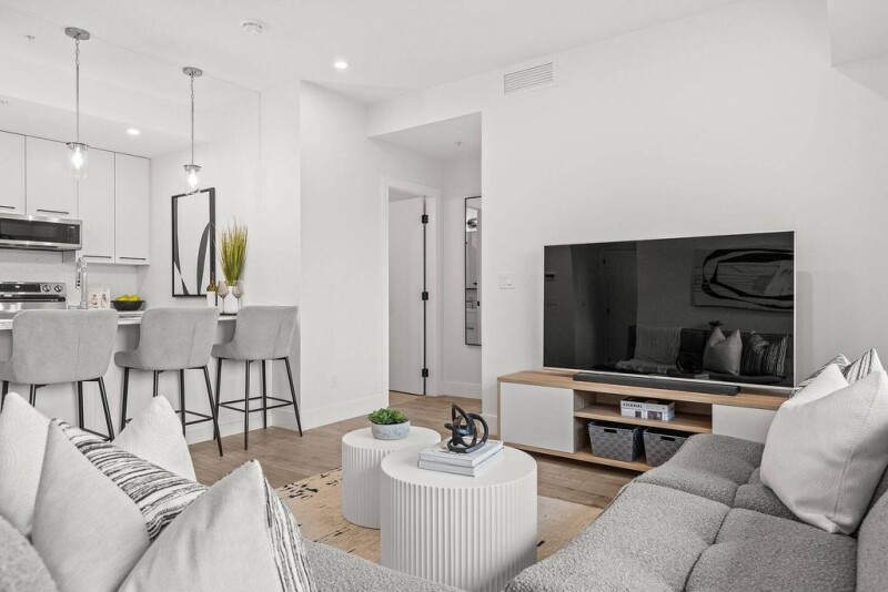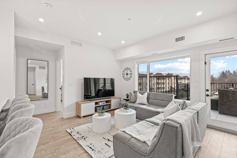 Located in the heart of the city, this south-facing two bed, two bath condo offers amazing conveniences. Newly constructed, The Rydell is just one block from the Capri Centre (slated for redevelopment to densify and attract more shopping/amenities). Enjoy walking to grocery stores, coffee shops, restaurants, GoodLife Fitness, and more! Sutherland Avenue features a dedicated, protected bike lane connecting directly to the Landmark District and the Parkinson Recreational Centre, with a new facility anticipated to begin construction next year. Thoughtfully designed, the building includes secure bike storage, e-bike charging, a wash and tune-up station, and a community clubroom with a kitchenette and an expansive BBQ patio. Pet-friendly policies allow up to two dogs (under 25 lbs each), two cats, or one of each —if you have just one dog, there is no size restriction. This unit comes with one dedicated and secured parking stall, and guests can take advantage of secure visitor parking or free street parking while they can! The kitchen is perfect for entertaining, with Bianco Gioia quartz countertops and backsplash, seating for four, a Samsung stainless steel appliance package, and plenty of storage space. High ceilings and large windows fill the home with light, creating a bright canvas for your personal touch. Take immediate possession! This unit has never been occupied, so GST is applicable. Visit our showroom Friday-Sunday, 1:00-3:00pm and ask about our 2.99% fixed interest rate incentive!.