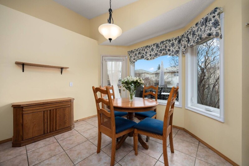 Pride of ownership shines through in this beautifully maintained bungalow offering a functional layout and timeless charm in over 2,400sqft of developed living space, perfect for first-time buyers and smart-sizers seeking the ease of single-level living. Step inside to a bright living room, with a cozy fireplace setting the tone for relaxation. The formal dining room, enhanced by skylights, is ideal for hosting family and friends, while the open-concept design ensures effortless entertaining. The kitchen boasts updated countertops and backsplash, with a sunny south-facing eating nook that opens to a spacious deck and lower patio complete with a gazebo, extending your living space for warm-weather gatherings. The primary bedroom easily accommodates king-sized furniture and boasts vaulted ceilings, plus a four-piece ensuite with a soaker tub. All main floor windows were replaced in 2017. Downstairs, the fully finished basement is a versatile open space, perfect for a home office or gym, alongside a sitting area with a fireplace, a generously sized bedroom, full bathroom, and the laundry/mechanical room offers convenience with ample storage and a workbench. A larger to-code window was installed in the bedroom in 2015 ensuring safe, comfortable lower-level living. The expansive backyard is a true retreat, featuring a garden, flower beds brimming with perennials, a lilac tree peeking over the upper deck, a Virginia creeper adorning the archway adjacent to the gazebo and plenty of grassy area. The double-attached garage adds both convenience and security, and the front drive offers extra parking. Additional updates include a new water heater, a front lawn, and a security system (all in 2024), skylights replaced (2019), roof (2010), garage door (2016). Close to parks, walking paths, an 18 hole golf course and easy access to Deerfoot Trail, this home offers excellent city connectivity while nestled in the beautifully established neighbourhood of Douglasdale. Move-in ready and brimming with potential, this home is an exceptional find!.