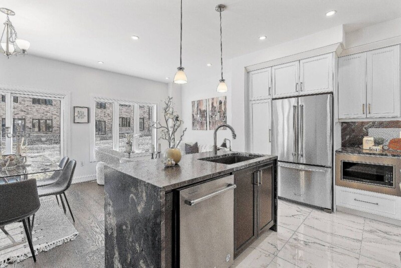 Brand New Exquisite 5-Bedroom, 3+1 Bathroom Townhome Close to Guelph Lake. This townhouse complex is complete, featuring a small boutique-style development with only 31 units in total. All remaining units are built and in the drywall stage, with 9 units remaining. The unit comes with a Tarion warranty. Buyers can choose finishes, with occupancy available in 60-90 days. Welcome to North Ridge Upscale Towns, where exceptional comes as a standard. The unmatched superior quality and building workmanship are evident throughout. Finishes include hardwood floors and stairs, crown molding, a free-standing soaker tub, granite countertops with undermount sinks, 9-foot ceilings on the main floor and basement, and oversized windows throughout. The French Provincial-inspired exteriors are beautifully finished with upgraded stone, decorative columns, modern glass railings, and accents such as arches and keystones. RealPro has presented a brilliant selection of finishes, paired with stunning sightlines and spacious layouts that make these homes ultra-luxurious. These gorgeous properties back onto a beautiful buffer of green space and are located at the edge of Guelph, just moments from Guelph Lake and Guelph Lake Sports Fields. Less than 10 minutes to the University of Guelph.