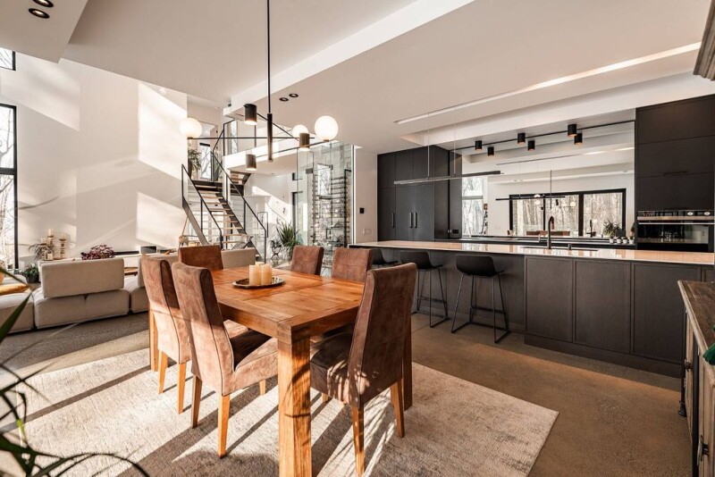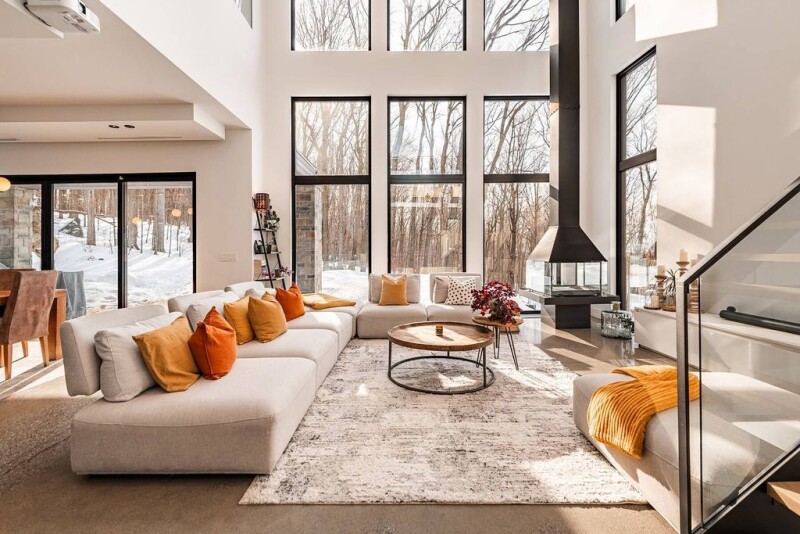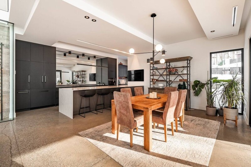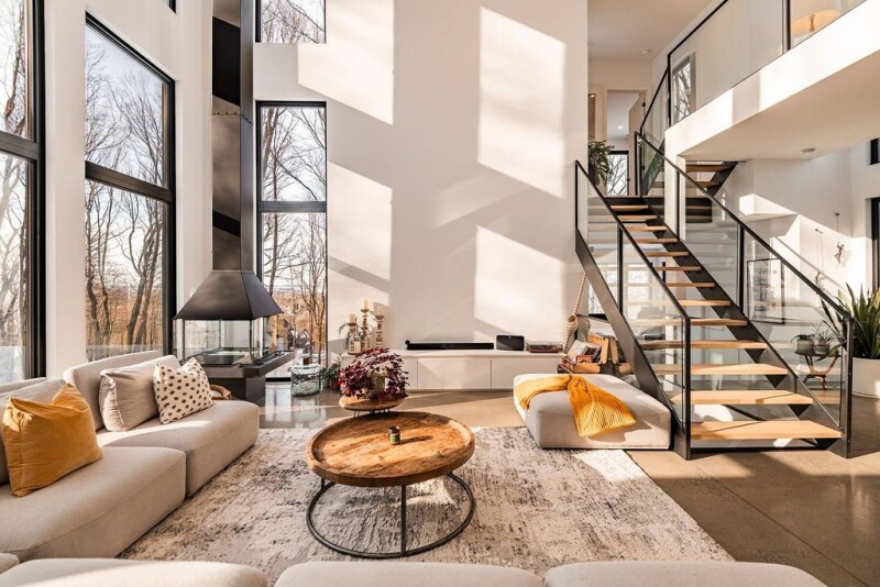 A Modern Mountain Oasis: Exquisite Luxury Awaits Tucked away at the end of a serene street in the heart of the mountains, this impressive 2020 family residence presents a harmonious blend of grandeur and comfort. Spanning four spacious bedrooms and three and a half elegantly appointed bathrooms, the home boasts a stunning 22-foot ceiling in the living room, inviting natural light through expansive floor-to-ceiling windows. The unique architectural design offers high-end finishes and top-of-the-line appliances in the gourmet open-concept kitchen, perfect for both entertaining and family gatherings.
