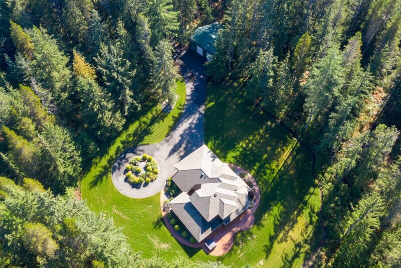 Welcome to this meticulously maintained three bedrooom and three bathroom home that is situated on a 5.19 acre parcel, surrounded by a lush and thriving forest and peaceful aesthetic. Interior features include granite counters, cherry wood cabinetry and staircase, Brazilian hardwood floors, stainless appliances, and a 17’ ceiling in the great room. The primary bedroom is considerable in size with a luxurious ensuite. The large ensuite shines with his and her sinks, a double shower, tub and access to the patio. A large attached three car garage rounds out the main home. Exterior features: two separate shops outfitted with metal siding and roof, one shop with 200-amp and the other with 400-amp service, sidewalks / patio in stamped concrete, vehicle turnaround. Infrastructure: built in vacuum, paved driveways, 50-year roof, cell booster, powered gate, substantial water treatment system. Secluded from neighbours and only minutes from the city, it is hard to find a complete package like this. Book a showing today.