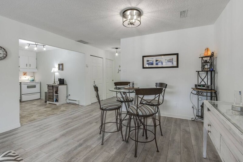 Welcome to effortless, low-maintenance living in this meticulously updated two-bedroom, two-bathroom condominium at Bowling Green Estates. Set within a quiet, well-kept community, this unit offers the convenience of direct interior access from the single-car garage and a smart, functional layout enhanced by luxury vinyl flooring throughout. The combined living and dining area flows seamlessly into a modern kitchen, continuing through to a spacious primary bedroom complete with a four-piece ensuite. A sliding glass door opens to a private patio perfect for morning coffee or evening unwinding. With forced air gas heating providing year-round comfort, this thoughtfully upgraded unit blends style, warmth, and ease. Recently installed additional R-60 insulation in the attic offers improved heat efficiency, reducing seasonal cost increases. Whether you're downsizing or entering the market, don't miss your chance to call it home.
