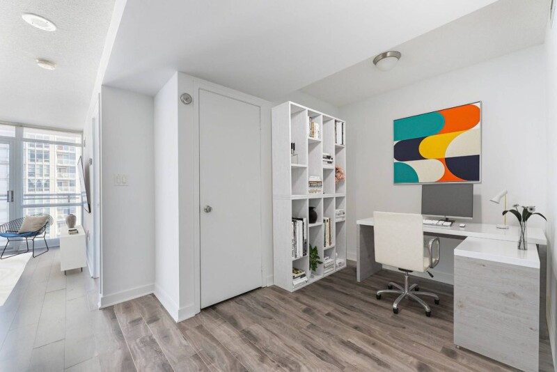 Waterfront living at its best in this bright 1 bedroom plus den suite with parking and locker. Breathtaking unobstructed lake and CN tower views. Generous layout with open concept design and oversized principal bedroom. Amazing amenities: 24-hour concierge, fantastic indoor pool, exercise room, 27th-floor sky spa with a hot tub, steam room and city/ lake views, paid visitor parking, guest suites and more. Park, TTC, community centre and school at doorstep, Sobeys across the street, close to Entertainment District, The Well, Waterfront, CN Tower, Rogers Centre, minutes to King and Queen West.
