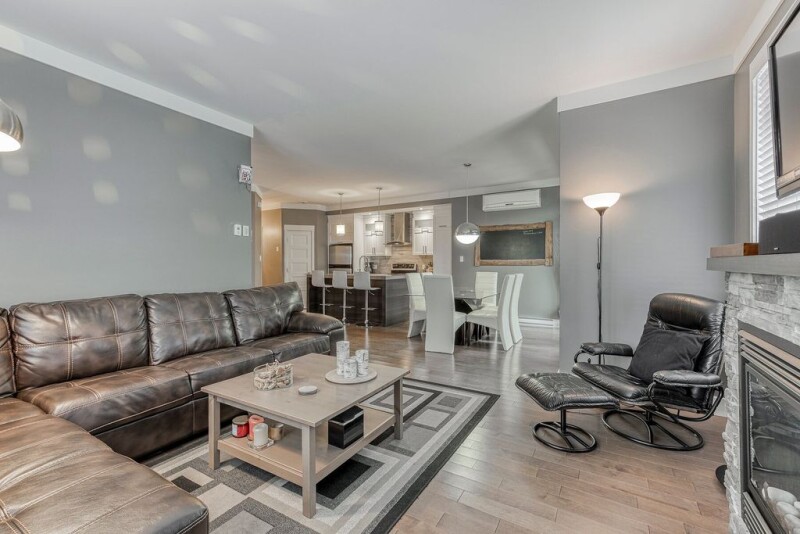 Living the way of life of Bromont all year long! Beautiful fully furnished and equipped condo located 2 steps from the slopes and outdoor activities! Large, open and bright living space, spacious living room with gas fireplace and large dining room with terrace access, kitchen with dining island, plenty of storage, all appliances included, 2 bedrooms including Master suite with adjoining bathroom, beautiful terrace, 2 private outdoor parking spaces and locker. For your pleasure, shuttle to Ski Bromont at the door! 3 golfs, Multisports Velodrome, hiking trails, all shops and services at few minutes, a great place to live, available April 1st.
