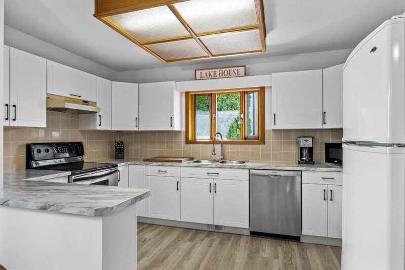 Stunning views of Shuswap Lake await at this home in the desirable Raven neighborhood in North East Salmon Arm! With a prime location just down the road from Raven Park and many recent updates, this home is great for the whole family or for first time home buyers. The home features a well-appointed kitchen, a breakfast nook, a dining table with beautiful views of the lake that steps out to the deck, living area with lake views, guest bedroom, and four piece bathroom. Wake up to a lake view every day from the large master bedroom with a four piece ensuite and walk-in-closet. In the basement, there is a bedroom currently being used as an office, utility and laundry room, recreation room that steps out to the patio, and a non-conforming suite with a locking door connecting it to the interior basement, an exterior separate entrance, bedroom, laundry, kitchen, and three piece bathroom. The exterior features a spacious and fenced backyard perfect for relaxing with your friends and family, fruit trees, a large driveway, and an attached double vehicle garage. 4591 13 Street North East is located close to local amenities including walking trails, parks, golf courses, restaurants, the downtown core, and more!.