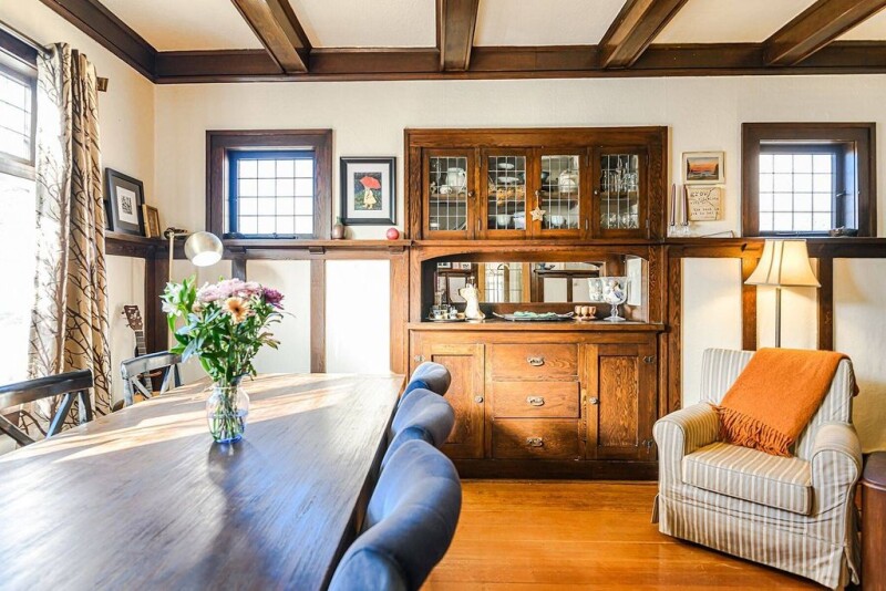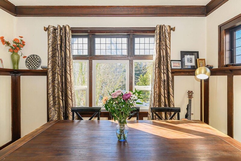Beautifully updated character home with five bedrooms and three bathrooms across three levels—a perfect family home in a central location. Rich wood details and refinished hardwood floors welcome you into the main living area, featuring four bedrooms, a den and two bathrooms. A self-contained one bedroom suite with laundry offers great rental potential. The updated kitchen boasts leathered granite counters, a large island and ample cabinetry, opening to a new deck. The dining room has a gas fireplace and built-ins, while the family room offers a wood-burning fireplace. Upstairs: three bedrooms, one bathroom, and a primary with walk-in closet. The lower level has a den/laundry room and workshop with storage. Lush backyard features a century-old Bramley apple tree, roses, magnolia, and dogwood. Major upgrades: updated electrical, dual drain tile, vinyl windows, hot water on demand and reno’d kitchen and bathrooms. Large driveway fits multiple vehicles, including a boat or RV. Steps to Quadra Village, cafes, and recreation. Move-in ready and meticulously maintained!.