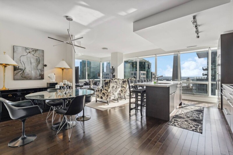 Immaculate and move-in ready 1249 square foot corner suite with dazzling views at TIFF Lightbox - your urban oasis awaits. The views from every window will take your breath away. Experience unparalleled luxury living in the heart of Toronto's vibrant Entertainment District. This striking corner suite offers two large bedrooms and two bathrooms. Bathed in natural light, this meticulously designed residence offers a sophisticated and contemporary living space, perfect for those seeking the ultimate urban lifestyle. You are going to love the spacious and open-concept living / dining / kitchen layout, ideal for entertaining and relaxation. It is one wonderful space. The gourmet kitchen, featuring high-end Miele stainless steel appliances, Irpinia cabinetry, back-painted glass backsplash, quartz countertops, and an oversized centre island for at least four to sit. Floor-to-ceiling windows showcase dazzling city views, both day and night. There is even a nook ideal for your desk work area. Walk-out to the 100 square foot balcony. Split bedroom plan for optimal privacy. The generously sized bedrooms offer private retreats, each designed with comfort and style in mind. The primary suite boasts a luxurious ensuite bathroom, complete with premium fixtures and finishes. The second bedroom is equally well-appointed and offers ample closet space. A further well-appointed bathroom completes the thoughtful layout of this exceptional suite. Residents of TIFF Bell Lightbox enjoy access to an array of 5-star hotel-style amenities. 24-hour concierge. The building offers well-appointed guest suites, providing a comfortable and convenient stay for visitors. Maintain an active lifestyle with the state-of-the-art fitness centre, take a refreshing dip in the indoor pool, or unwind in the soothing sauna. For those who work from home, the building offers a fully equipped business centre, providing a professional and productive environment. And, for the ultimate entertainment experience, residents have exclusive access to the TIFF screening theatre, allowing you to enjoy film premieres and private screenings in the comfort of your own building. With summer around the corner, entertain friends on one of downtown’s best patios: your condo’s! Newly created a few years ago, with outdoor BBQs, a bar, lounge seating and dining tables. The prime location of TIFF Lightbox places you in the epicentre of downtown Toronto's dynamic Entertainment District, within walking distance to the financial district. Delectable dining, live theatre, concerts, sports, and other exciting nightlife are just steps from your door. With easy access to the subway. Whether you're a film enthusiast, a foodie, a fashion aficionado, or simply someone who appreciates the energy of a thriving urban centre, this exceptional residence at TIFF Lightbox offers the perfect blend of luxury, convenience, and lifestyle. Parking and locker included. This deluxe corner suite has it all!.
