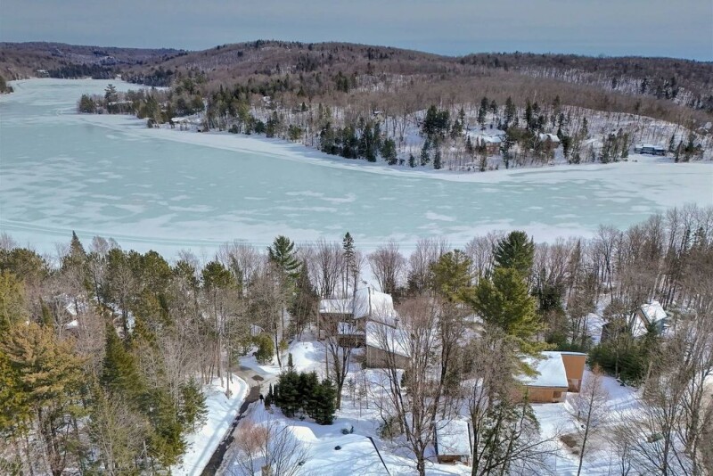 A true architectural gem on the shores of the majestic Lac des Becs-Scie. This immaculate estate has been renovated and redesigned with impeccable taste using superior quality materials and finishings. Boasting spacious open living areas, cathedral ceilings, panoramic lake views, a gourmet kitchen with a large pantry, a luxurious primary bedroom suite, etc. The exterior offers a 3-season solarium, a large dock, an easily accessible lakefront, southern orientation, low maintenance grounds with lush gardens and natural stone walkways, an irrigation system and a spa. Located only 10min from the quaint Saint-Sauveur village and 1hr from Montréal. MAIN FLOOR - Vast and inviting entrance showcasing an impressive view of the unique architecture. - Immaculate living room with a 2-story wall of windows and Rumford fireplace. - Gorgeous gourmet kitchen with natural stone countertops, professional-grade appliances and a large pantry. - The dining room has a gas fireplace and opens up to a large screened solarium overlooking the lake. - Powder room appointed with elegant fixtures. - Laundry room with custom cabinetry and Miele appliances. - Large mudroom with dog bath, custom cabinetry, accessible from the exterior and the garage. UPPER LEVEL - Beautifully designed with an abundance of natural light. - Vast, sunfilled mezzanine overlooks the main floor and benefits from an exceptional view of the lake. This area could have multiple uses, such as an office, library, lounge room, etc. - Luxurious primary bedroom suite with gas fireplace, balcony, large walk-in custom closet and beautifully appointed en-suite bathroom. - Access to the 2nd-floor terrace with panoramic views. GARDEN LEVEL - Spacious rooms and hallways, most with heated radiant flooring. - Large family room with lake views and a gas fireplace. - 2 spacious bedrooms, one with a walk-in closet. - Full bathroom. - Access to the spa. - Large mechanical/storage room with high ceilings. EXTERIOR - Motorized lake. - South/East sun orientation - Beautiful shoreline with a large dock. - Natural stone steps and manicured walkways surround the property. - Low-maintenance exterior with an abundance of natural Indigenous vegetation. - Spa - Irrigation system EXTRA - There is a servitude for two extra parking spaces at the top of the road - Highspeed internet with Bell Fibe.