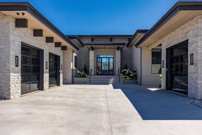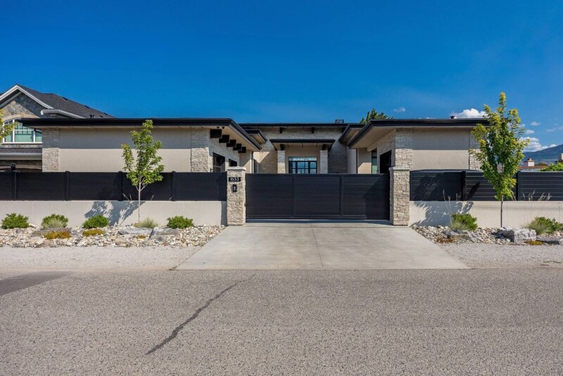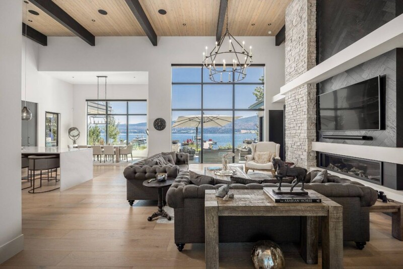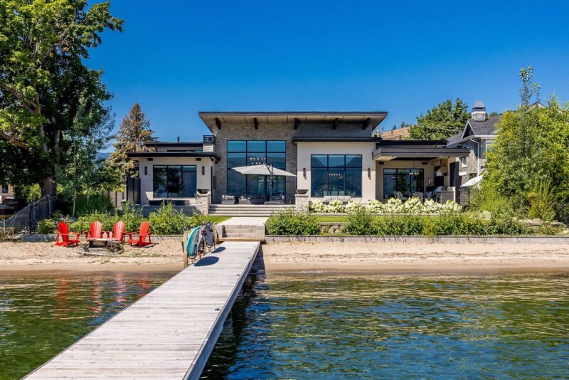 Award Winning Waterfront. This private, custom-built residence received accolades at the 2023 CHBA National Awards for Housing Excellence, celebrated as one of Canada’s finest detached custom homes. Single-story living is highlighted by soaring 19-foot ceilings and oversized windows. Wide plank white-washed oak hardwood, herringbone oak doors, and custom metal doors enhance its aesthetic appeal. A chef's kitchen features perfectly positioned lake views, complemented by high-end Miele appliances and a spacious pantry that can be converted into a temperature-controlled wine room. The primary bedroom offers another breathtaking lakeview, a luxurious ensuite, and an adjacent gym filled with natural light. Two additional ensuite bedrooms on the other side of the home provide privacy for children or guests. Indoor space seamlessly transitions to a level backyard overlooking Okanagan Lake. Outdoor amenities include a gourmet kitchen with a privacy-screened louvered pergola, gas fire bowls, and a newly expanded dock equipped with a 14,000lbs boat lift. Automotive aficionados will appreciate the main garage, which includes a 9,000lbs lift. A single garage is perfect for storing motorcycles, bikes, and water toys. Located amidst stunning landscapes characterized by its vineyards and mountains, this home is surrounded by numerous award-winning wineries that showcase the unique terroir and flavors of the celebrated Okanagan Valley wines. Truly luxury waterfront living in a private oasis.