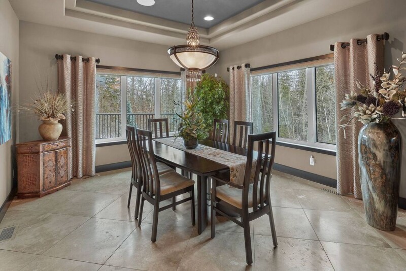 Nestled on a private ravine lot, this custom-built walkout bungalow offers an unparalleled blend of luxury and tranquility. Thoughtfully designed, it features soaring twelve-foot ceilings, hand-scraped walnut and travertine flooring, and expansive windows that frame breathtaking one-hundred-and-eighty-degree views. The great room is bathed in natural light, centered around a striking three-sided marble fireplace. A chef’s kitchen boasts premium appliances, generous prep space, and exquisite designer details, perfect for hosting. A second living area doubles as a four-season sunroom, seamlessly connecting indoor and outdoor living. The serene primary suite includes a spa-inspired ensuite and a custom dressing area. The walkout level is an entertainer’s dream with a golf simulator, wet bar, and dual recreational spaces. An oversized heated quad garage features a pet shower, bathroom, and space for car lifts. Minutes from amenities yet immersed in nature, this home is a true retreat.