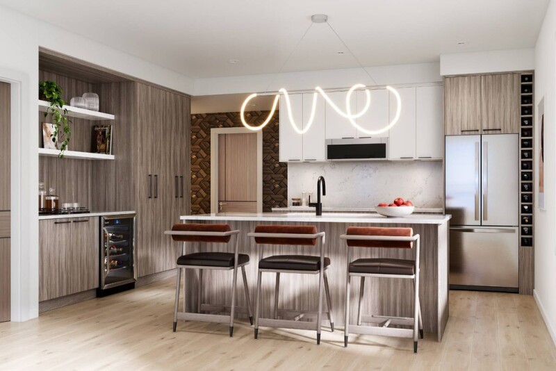 Welcome to the Summit at Eminence at Knox Mountain! The striking natural backdrop of Knox Mountain is the inspiration for Eminence’s upscale, modern mountain architecture and prominent streetscape, working in harmony with the prestigious, well-established neighbouring communities, Highpointe and Magic Estates. This charming well appointed two-bedroom, two-bathroom, offers 849 square feet of modern living space. This beautifully designed home features high-end finishes, including sleek stainless steel appliances and a stunning quartz backsplash that adds both style and durability to the kitchen. The elegant two-toned soft-close cabinets provide ample storage while maintaining a sophisticated, contemporary aesthetic. Eminence is rich in resort inspired amenities which include The Lodge an exclusive owners lounge, outdoor pool and hot tub, fitness centre, off leash dog park and direct access to Knox Mountain's hiking trail system. Whether you’re cooking, relaxing, or entertaining, this home offers the perfect balance of comfort and functionality. Don’t miss out on this ideal blend of luxury and practicality in a perfect location! Estimated completion late spring/early summer 2025.