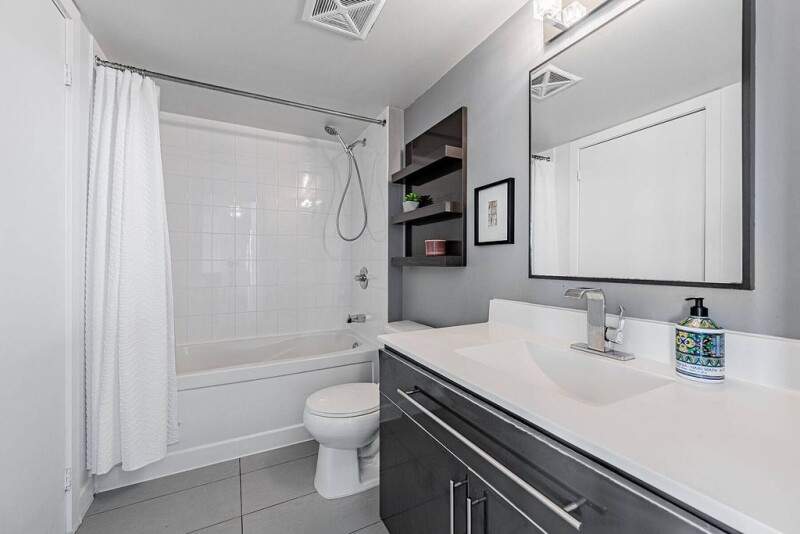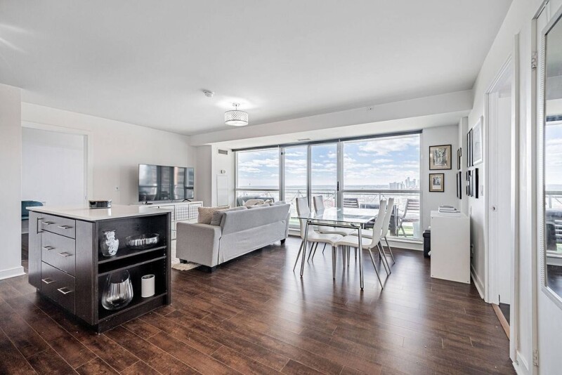 In Liberty Village, absolutely stunning 2 bedroom unit with 2 bath with one of the best layouts in the building. Living/Dining area & floor-to-ceiling windows with walkout to a 125 sq.ft. terrace with beautiful south-western lake view. Kitchen with center island & S/S appliances, quartz countertops, glass tile backsplash, master bedroom with 4 pc. ensuite & w/o closet and large window w/ lake view. Liberty Village offers a great community lifestyle w/ out the hustle & bustle of downtown living. Walking distance to grocery stores, cafes, banks, restaurants & directly across from TTC. Conveniently located 10 mins from Lake Ontario, financial, fashion & entertainment districts, GO and TTC.