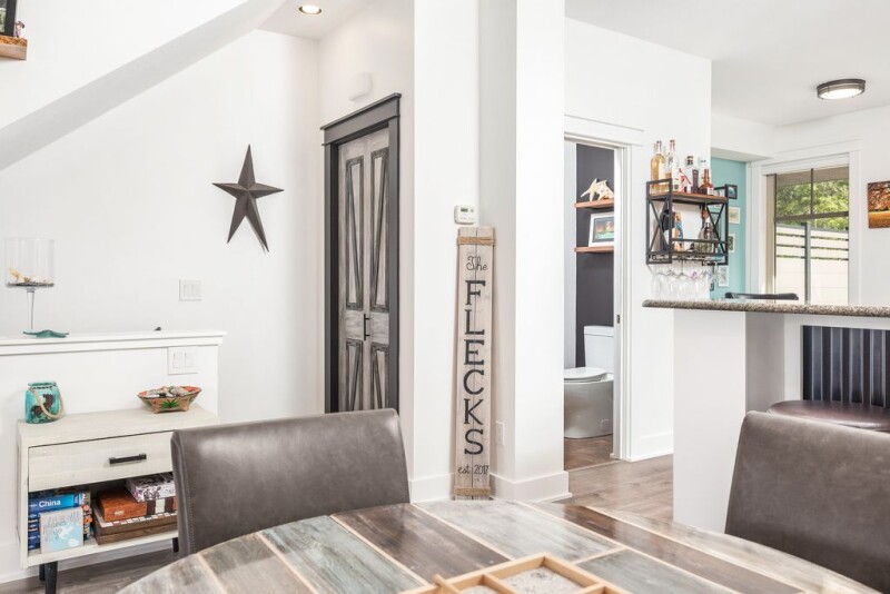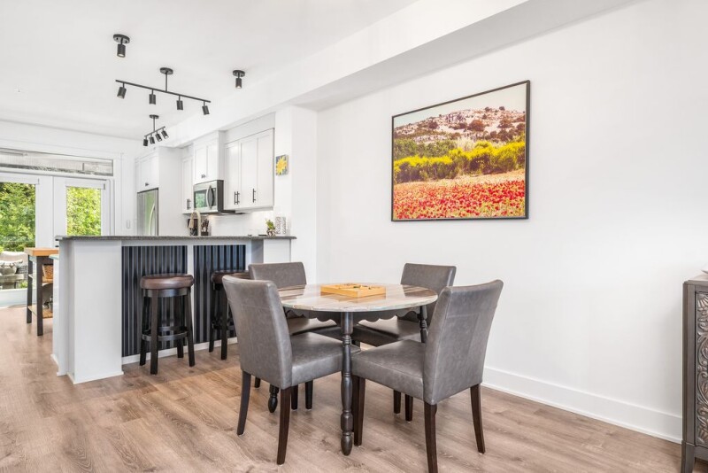 Beautifully maintained and recently updated townhome represents the absolute best value that Predator Ridge has to offer! Spacious south-facing updated kitchen allows daylight to flood in highlighting the freshly painted cabinets, newer gas stove, dishwasher and updated hardware and lighting. A functional nook, ideal for morning coffee, opens through french doors out to a cozy patio enhanced by an electric custom awning, xeriscape garden and brand new privacy fencing. Beyond the kitchen is a generous dining area, two piece bathroom and a comfortable living room with gas fireplace. New paint and lighting fixtures throughout, engineered vinyl plank flooring up and down and newly carpeted stairs that lead to the upper floor to a generous primary bedroom with ensuite, a second bedroom with its own ensuite and a laundry washer/dryer closet. Newly carpeted front stairs lead you down to the main foyer to an oversized tandem garage area perfect for a car, golf cart and workshop. Epoxy flooring, metal heavy duty suspended shelving and custom shelving provide plenty of room for extra storage. This property offers a wonderful sense of house while still enjoying the benefits of lock-and-leave luxury condo living. Enjoy the Predator Ridge/Okanagan lifestyle – golf, year-round dining, fitness centre, pool, endless biking/hiking/walking trails, tennis/pickle ball and more!.