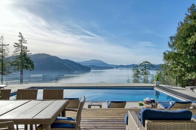 Introducing this spectacular waterfront estate home with finished carriage house, gracing a sprawling 4.94-acre property with awe-inspiring panoramic ocean and island views, plus scenic trail/AV access to the Ocean. A short drive from Langdale ferry terminal, this residence seamlessly blends luxurious living with convenience. Stroll to the beach, spend the day pool-side and relax and unwind in your private oasis, complete with every imaginable amenity. Enjoy a lavish 40-ft saltwater swimming pool, an inviting hot tub, outdoor wood burning fireplace, media room and a chef’s dream kitchen perfect for the cook and entertaining. With seven generously appointed bedrooms and seven and a half bathrooms, this estate property offers ample space for hosting friends and family. Foreign buyers welcome!.