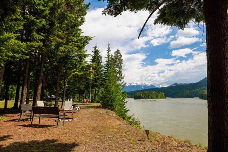 The Silver Springs RV and Lodging Resort offers a truly breathtaking experience nestled along the Skeena River amidst the Seven Sisters Provincial Park and Protected Area. Imagine waking up to the sight of seals swimming upstream from the Pacific Ocean, following the salmon, with stunning glacier-topped mountains in the background. This expansive property spans 86 acres and features 1000 plus feet of Skeena River frontage, making it a haven for wildlife enthusiasts and nature lovers alike. The lodge itself boasts 12 bedrooms and 13 bathrooms, constructed with cedar and wood windows that complement the natural surroundings. Most bedrooms include ensuite facilities, ensuring comfort and convenience for guests. For those preferring RV camping, the resort offers 30 well-spaced sites designed for privacy, along with amenities such as a sani-dump. The property operates off-grid, powered by a combination of solar energy and diesel generators, ensuring sustainability in this remote and pristine environment. Wildlife sightings are common, including Spirit Bears, Brown Bears, Black Bears, and Grizzly Bears, adding to the allure of the natural setting. A boat launch on-site provides easy access to the Skeena River for fishing or exploring. The unique zoning of Resort one allows for commercial lodge and RV campsite operations, while the remainder of the property falls under Agricultural Land Reserve (ALR) designation, preserving its natural beauty and potential for various outdoor activities. For adventurers, the proximity to the Seven Sisters Provincial Park trail system offers opportunities for hiking and exploring the rugged wilderness leading to the Seven Sisters Peaks. Additionally, with ample space for a helicopter landing, the property caters to heli-skiing operations or other aerial activities, enhancing its appeal to outdoor enthusiasts and sports adventurers. Located approximately 55 kilometers from Terrace and just 30 minutes from the Terrace regional airport with connections to AirCanada and WestJet, Silver Springs RV and Lodging Resort combines remoteness with accessibility, offering a unique opportunity to experience the unspoiled beauty of British Columbia's wilderness. Imagine!.