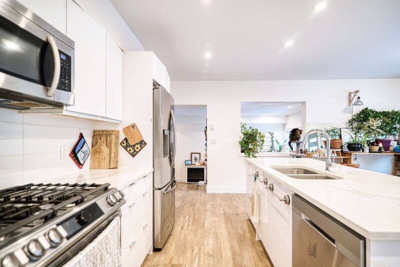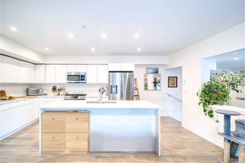 Ideal for retirees and first-time buyers! This 1,169 sqft one-level-living, townhouse style residence boasts two bedrooms, two bathrooms, with a bright, open and spacious layout. This is the only unit with a two-car garage which provides ample storage for kayaks, bikes, and outdoor gear! The oversized modern kitchen features a huge island, great for entertaining with ample counter and cupboard space. This area flows into a spacious dining space and the cozy living room with an electric fireplace. The primary bedroom features a walk-in closet and a four-piece ensuite, while a second bedroom and bath accommodate guests. Large, sun-filled windows offer stunning garden views and access to a private terraced patio—perfect for relaxing, gardening, or soaking up the late afternoon sun. Foreign buyers welcome.