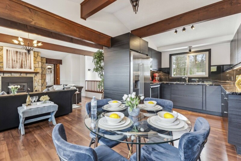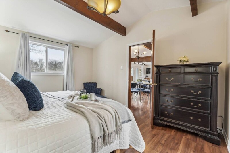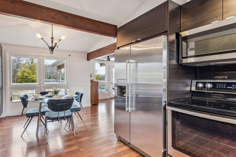 Indulge in all-season waterfront living at this captivating 3+3 bedroom, 3 bathroom ranch-style bungalow situated on a sprawling half-acre lot, in the highly coveted area of Wasaga Beach. Set off the quiet street of Oxbow, with picturesque views of Nottawasaga River, an unparalleled location with untouched municipal land beside it, guaranteeing ideal seclusion. Custom millwork, beamed ceilings, and wainscotting add character to the beautifully updated interior, marrying modern elegance with rustic charm. Revel in the allure of titanium and gold granite countertops, cozy up by one of two fireplaces, or relax in the covered porch, hot tub, and above-ground pool for seamless indoor-outdoor living. With convenient access to local beaches, trails, shopping and ski hills, and 2889 square feet of living space, this sanctuary is ideal for those seeking a spacious and opulent retreat in a truly enchanting setting.