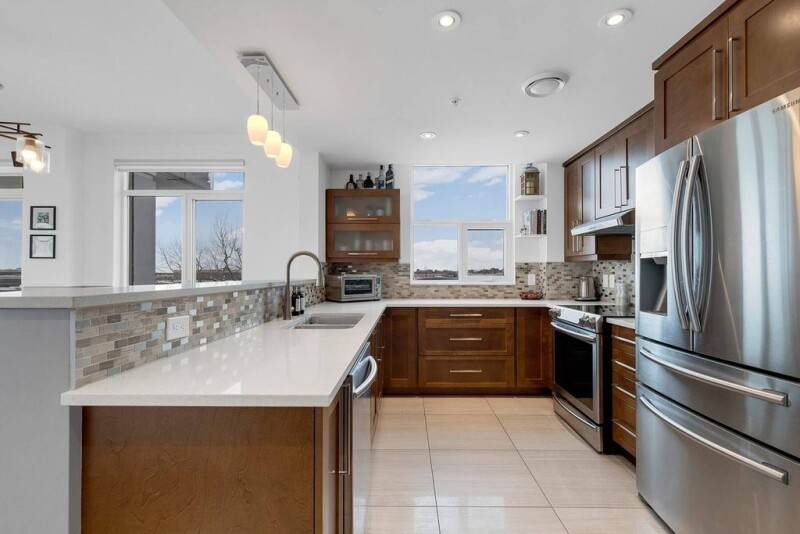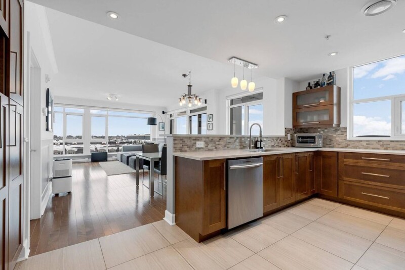 Rare Opportunity! Stunning corner unit with an expansive private terrace. This two bedroom, two bathroom condo offers a spacious and well-designed layout, featuring high ceilings, oversized windows, and elegant proportions. The primary suite includes a walk-in closet and an ensuite bathroom for added comfort. Enjoy the convenience of an interior parking space and storage locker in a prestigious building with top-tier amenities, including guest parking, a gym, a pool, and a reception room. Ideally located near all services and public transit. A must see.