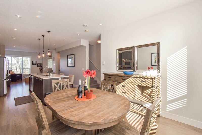 The beauty of this home lies not only in its condition and the amenities of the complex, but in how it "lives". From the top down there is an oversized roof top patio with private hot-tub, glass railings and stunning views and sunsets. Next level has two ensuited bedrooms: one at each end. The main floor is open concept with extra windows, fireplace, powder room and over sized kitchen island and the ground floor consists of flex space that has it's own entrance - bedroom/office/crafts. And when they say location matters, listen. This end unit is straight across from Oak Meadows park, mere blocks from Grandview Corner and Morgan Crossing shopping districts, Edgewood Elementary and Grandview Heights High School. The amenities: gym, party and theatre room and playground.