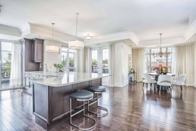Introducing a Truly Rare Gem at 1717 Avenue Road. Step into a world of elegance with this extraordinary two-bedroom plus den, three-bathroom suite, nestled in one of Toronto's most sought-after boutique condominium residences. With a generous layout of 1,688 square feet, this stunning suite offers a unique blend of luxury and functionality that is truly unparalleled. As you enter, you are greeted by gleaming strip hardwood flooring that flows seamlessly throughout the space, exuding warmth and sophistication. The gourmet kitchen is a chefs delight, showcasing gorgeous granite countertops, custom cabinetry, and top-of-the-line appliances, making it the perfect setting for culinary creations and memorable gatherings. The living room features a finely crafted custom wall unit with a cozy fireplace, creating an inviting atmosphere for relaxation and entertainment. The suite is thoughtfully designed with custom built-in storage units in the primary bedroom, second bedroom, and den, ensuring that every inch is optimized for your convenience and style. Experience the open-concept floor plan that promotes a seamless flow between spaces, highlighted by soaring 10 foot ceilings that create an airy and spacious environment. The timeless finishes and exquisite designer upgrades throughout the suite provide an unparalleled living experience, making it ideal for hosting friends or spending quality time with family. Venture outside to the expansive 213 square foot terrace, your private sanctuary to enjoy breathtaking sunsets and the vibrant views of the surrounding Bedford Park neighbourhood. Whether its a quiet morning coffee or an evening soiree under the stars, this outdoor space offers the perfect backdrop. Enjoy the convenience of nearby upscale shopping, fine dining, and lush parks, all while being part of a community that values sophistication and style. 1717 Avenue Road is more than just a home: it's a lifestyle choice.