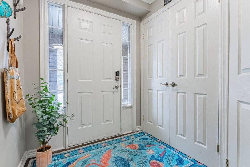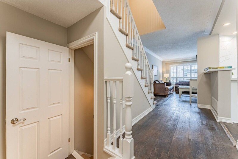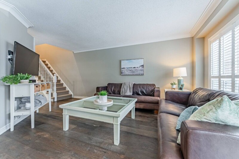Welcome to the Fairfields. This executive townhome is nestled down a quiet, private cul-de-sac, In Old Milton. This home offers a spacious single drive, spacious garage and large covered front porch. As you enter into the spacious front foyer you are met with neutral decor and elegance. There is wide plank wood floors throughout, double coat closet, powder room and garage entry from the front hall. The main floor offers a spacious living room and dining room combo, with large window and sliding glass doors, with California Shutters. Outside of the sliding doors is a private patio, overlooking green space, with large trees and landscape, making your outdoor space completely private. The kitchen, which is open to the living/dining, has been completely redone (2021) with painted cupboards, new hardware, new stone counters and backsplash, new charcoal gray stainless steel appliances (2021) and a grey double undermount sink with new tap. The layout is a cooks dream, including pantry with pullout shelves. Upstairs there is an oversized primary bedroom, with walk in closet and a private three piece ensuite. There are two more generous bedrooms with a 2nd full bathroom and California Shutters in all of the windows. The lower level houses wood like laminate floors with a spacious, yet cozy, recreation room, plus a den, currently used as a 4th bedroom. The laundry room is also in the lower level as well as ample storage. This desired complex provides owners with a maintenance free lifestyle, as snow removal, grass cutting and exterior windows are washed for you. A perfect home for busy executives, empty nesters, growing family and snow birds. Old Milton is one of the most desired areas of Milton, as the streets are lined with large mature trees and century old homes, with walking trails, parks and steps to all the amenities anyone needs, including a variety of restaurants, cafes and shops to choose from. This home is move in ready and waiting for you.