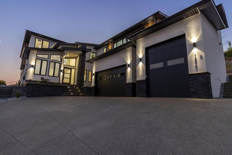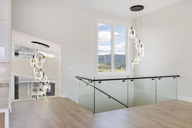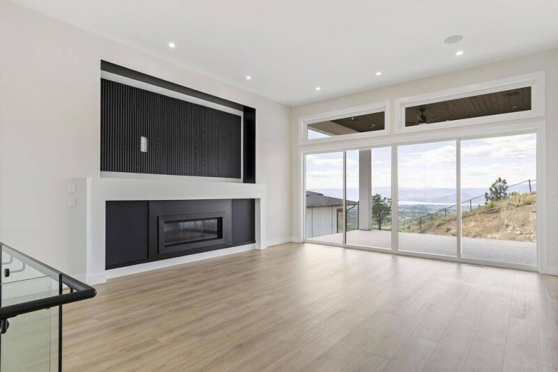 Excellent value in this spectacular newly constructed eight bedroom five bathroom, contemporary modern family home, beautifully sited on the high side of Black Mountain just below Mine Hill. This pool-sized 0.486 acre lot backs onto parkland, overlooking valley, orchard and lake views. This 4,871 square foot home was built for multi-generational living and the entertainer in mind, holding exceptional site lines from almost every window. At night the city lights come alive, where you can enjoy on your private and covered balcony, engineered for a hot tub, connecting to the primary retreat. Wired for sound inside and out the second level, the floor plan seamlessly connects indoor and outdoor living with sliding glass patio doors. Inside, the open floorplan showcases a spacious chef’s kitchen featuring two-tone cabinetry, a 10’ waterfall edge island with seating for six, a six burner gas range with pot filler, a large side-by-side fridge and freezer, and a separate prep/spice kitchen for convenience. A private elevator services the triple-car garage to the second level, making groceries a breeze and adding incredible accessibility. The towering 16’ front entryway makes a lasting impression, with a tranquil exterior water feature and elegant lighting, spanning to the open second level. A well-appointed office with its own separate entrance and vaulted ceilings is perfect for home-based business. The main floor offers multiple entertaining spaces with great accessibility to the backyard, as well as a secondary laundry, which adds the flexibility to utilize a two bedroom one bathroom lock-off in-law suite, while still leaving a large flex room. A completely separate two bedroom, one bathroom legal suite above the garage offers incredible views and spacious rooms for comfortable living and high rental value. Experience living in Black Mountain, where you are just beyond Kelowna’s city centre, surrounded by scenic acreage and only a short drive to Big White Ski Resort. Price + GST.