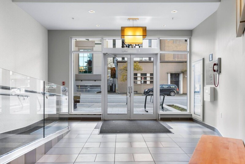 Downtown steel and concrete living for under 400 thousand. The 834 is affordable urban living with most of the amenities you need, within blocks. Chard built, and known for its community feeling, 834 is a respite from spiraling new build costs. The unit faces East with lots of natural light. The floor plan is open and features quartz counter tops, stainless steel appliances, in-suite laundry, blinds, and plenty of storage. The community room is great for larger gatherings and features a large and private patio area complete with barbecue. The roof top deck offers fantastic views of the city, the ocean and the mountains. The strata is professionally and responsibly managed. The fees are fair and there is a healthy contingency fund. Pet friendly with no weight restrictions. The unit comes with secure storage and bike racks available in the common area. This home will be a sound investment. All measurements are approximate.