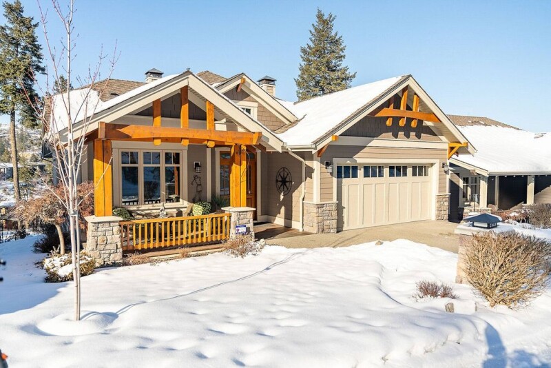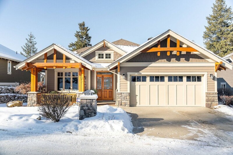 Perched above the golf course, this lovely home offers a treehouse-like feel with breathtaking, unobstructed views of Predator Ridge Resort and the surrounding mountains. Recently updated with stylish, modern finishes, this three-bedroom, three-bathroom home, provides a bright and inviting space filled with natural light. The spacious kitchen flows into the dining area and leads to an expansive deck with inset lighting and retractable screens—ideal for outdoor living. The master bedroom is a serene retreat, offering sweeping views and a luxurious spa-inspired ensuite. The main floor also includes an office, a convenient two-piece bathroom, and a custom laundry/pantry room. The epoxy-finished garage provides ample space for two cars. The fully finished walk-out lower level features two additional bedrooms, a bathroom, and a spectacular sewing/craft room with abundant storage. A cozy family and games room, complemented by a wet bar and wine alcove, offers the perfect setting for entertaining. The lower patio, has poured aggregate, features a beautifully landscaped garden with maintenance-free artificial grass, creating a private oasis. Embrace the Predator Ridge year-round community, offering unparalleled amenities and two of Canada’s finest golf courses. Amenities include state of the art fitness centre, pool, hot tub and steam rooms, yoga studio, outdoor yoga platforms, biking, hiking, five tennis courts, and pickle ball courts.