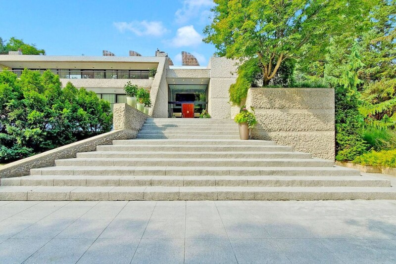 World Class Landmark Architecture 全球地標性建筑典範 | 多倫多跑馬徑豪宅 An exceptionally rare landmark residence in Toronto’s most prestigious neighbourhood. Discreetly hidden behind lush landscaping and quietest section of the Bridle Path, you will have found this timeless world-class contemporary building. The internationally renowned architect, John C Parkin, successfully implemented his modern vision into this mid-century masterpiece. This home is exceptional in its construction, engineering, thought, detail, material selection and flow. The concrete walls, which are embedded with pink and white quartz stones, are a work of art in their own right. They become whiter and stronger with time. Parkin’s forward thinking brought to life these unique attributes: (1) integrated a beautiful concrete building into the 2.12-acre landscape, positioning south of Lawrence Avenue with less traffic and more privacy; (2) bathed the spaces in natural sunlight thanks to the central four-storey solarium space with massive skylights and enormous windows; and private indoor and outdoor pools (3) subtlety united two indoor garage facilities plus circular driveway with ample ground parking; and (4) created opulent spaces and casual intimate areas. Walk into the front entry, over the black granite clad interior ‘bridge’, and stand in awe with views over the soaring interior atrium. The spaces have been designed for both everyday family living and large-scale entertaining. Host a charitable event with hundreds of people – the 26,000 square feet of space across all levels can easily accommodate large gatherings. Have a live band at the base of the atrium or spend intimate time in numerous living areas or the zen meditation garden. Guests can choose a drink from the main floor wet bar before descending the elegant floating staircase to the lower level. Pass the atrium and enter the nearly 1700 square foot recreation room to play cards or billiards. An adjoining catering kitchen serves this area. A total of eight bedrooms. Five of these bedrooms are found on the upper level, along with two sitting areas. On a practical level, the lower level offers a house manager’s office and abundant storage space. The main level has a two bedroom and two-bathroom housekeeper’s suite. This space also makes a perfect guest suite for extended stay family and friends. An elevator accesses all three levels. 2.12 acres of rolling lawns, gardens, towering trees, lawns, terraces, and gardens. There is even a putting green. The land has been sculpted for privacy and allows for wonderful vistas from every window. Indoor and outdoor swimming pools. When standing in the breakfast area, the floor cantilevers over the indoor swimming pool and allows you to look through the massive wall of glass to the outdoor pool. Car collectors will treasure the 7-car heated garage facility. Drive in one door and out another. With its greenhouse window and epoxy coating, it’s unlike any garage you have ever seen. Without question, The Bridle Path is one of the country’s most prestigious neighbourhoods. Located on the coveted and very quiet section of High Point Road. It is close to some of the country’s top private schools, including Toronto French and Crescent. Private clubs such as The Granite Club. Shopping at Bayview Village Shopping Centre and CF Shops at Don Mills. 30 minutes to the international airport or to the financial district. It is so rare to have over 2 acres of land yet be so close to everything. You will appreciate the meticulous plans at every aspect of this modern wellness design. A statement for your family name stamp. A phenomenal estate to add to your life’s most valuable collections. The crown jewel of Canadian modern architecture!.