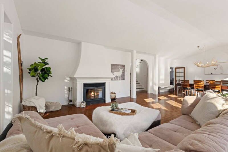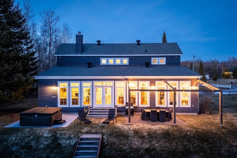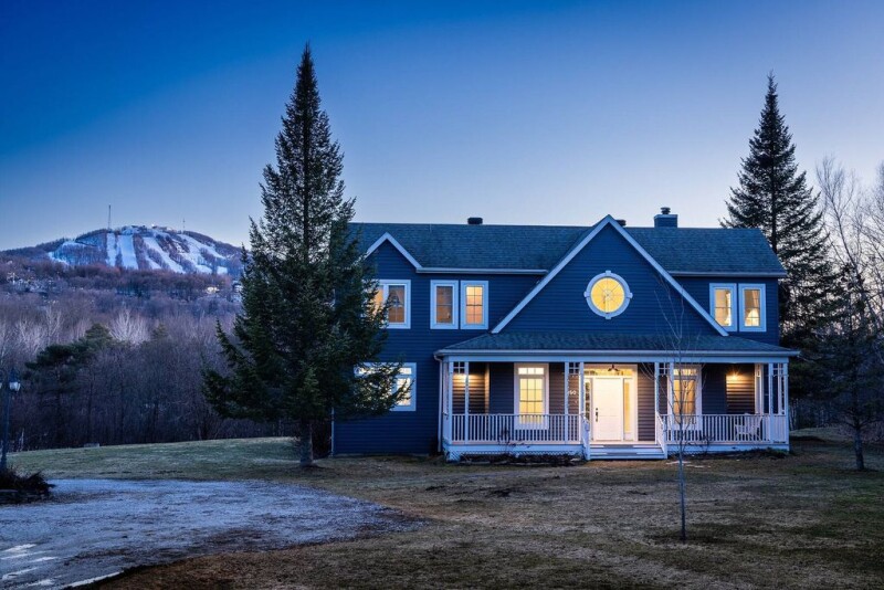 Exceptional property with breathtaking views of the Bromont ski mountain! This residence captivates with its expansive windows and high ceilings, filling the spaces with natural light and creating a sense of grandeur. It features three spacious bedrooms, perfect for a family or for comfortably accommodating guests. Nestled on a private lot of over 1.8 acres, surrounded by mature trees, it ensures tranquility and privacy in the heart of nature. Located in a sought-after neighborhood, it offers quick access to Bromont's amenities while providing a peaceful and enchanting living environment. A must-see!.