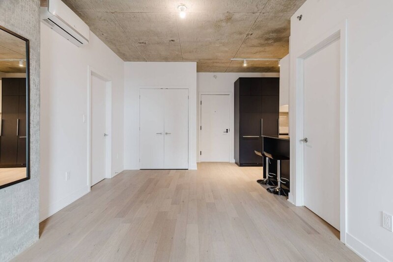 New construction. This well-proportioned open-concept condo features 2 bedrooms, several custom finishes and includes large appliances and in-suite storage space. Building with several services: gym, co-working lobby, rooftop swimming pool, BBQs & terrace offering a panoramic view of the city and a perfect viewpoint for the fireworks. Ideal location near the Jacques-Cartier Bridge, downtown Montreal, the St. Lawrence River, services, bars and restaurants in the area.