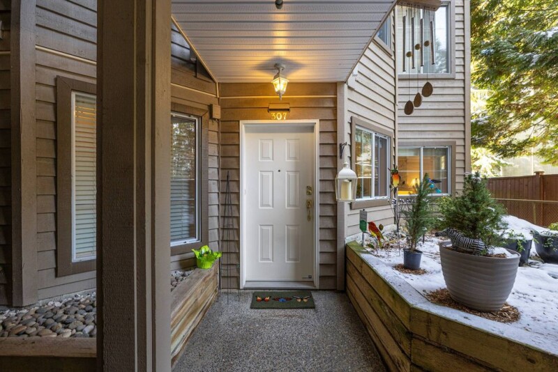 Welcome home to this beautiful 1,321 sq ft ground level two bedroom, two bathroom corner suite in Parkway Terrace. This unique residence offers the convenience of strata living plus the private feeling you get from a single family home. This suite is ready to move into, fresh paint, fresh carpets and new light fixtures throughout and the kitchen was tastefully renovated in 2016.The entrance has a lovely little area where you can bring your green thumb to life as well as a terraced, private back patio/garden to enjoy from a walkout in the dining room. It's both a covered & open landscaped space with River Rock accents, lush, Rhododendrons and Hydrangeas. Bring your Electric car, there’s a ready to use EV car charger that reaches your two parking spots. This is an excellent & friendly development, one pet.
