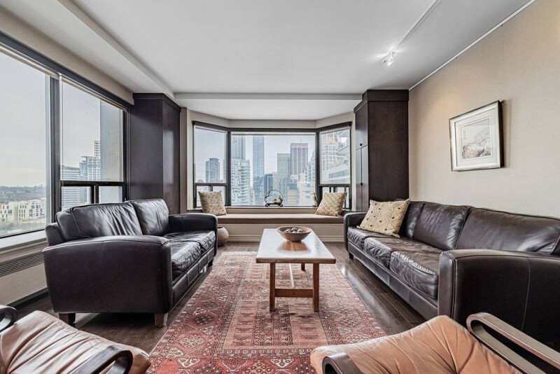 Welcome to Suite 1711, a refined residence in Toronto's prestigious Renaissance Plaza, where elegance and sophistication define Yorkville living. Spanning approximately 1,868 square feet., this spacious split 2-bedroom plus den, 2.5-bathroom plan boasts gleaming hardwood floors, built-ins, and an inviting, versatile layout. The expansive living and dining areas, bathed in natural light, provide the perfect space for entertaining. A generously sized, updated eat-in kitchen, convenient powder room, and ensuite laundry enhance daily functionality. Storage abounds throughout the suite, ensuring a seamless blend of style and practicality. Enjoy breathtaking, unobstructed northeast views that stretch over Yorkville to the lush greenery of Rosedale, offering a picturesque backdrop to your urban oasis. Renaissance Plaza embodies luxury and privacy, with world-class amenities including a 24-hour concierge, an indoor pool, a squash court, a sundeck, an exercise room, an events room, valet parking, and more. Situated in the vibrant heart of Yorkville, this sought-after building offers unparalleled access to fine dining, designer shopping, cultural landmarks, and the city's top attractions. Steps to the Royal Ontario Museum, the University of Toronto, and an array of exclusive boutiques and acclaimed restaurants.A rare opportunity to customize and transform a suite in one of Torontos most coveted addresses. Maintenance includes Bell TV and high-speed internet package.