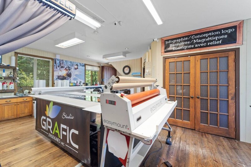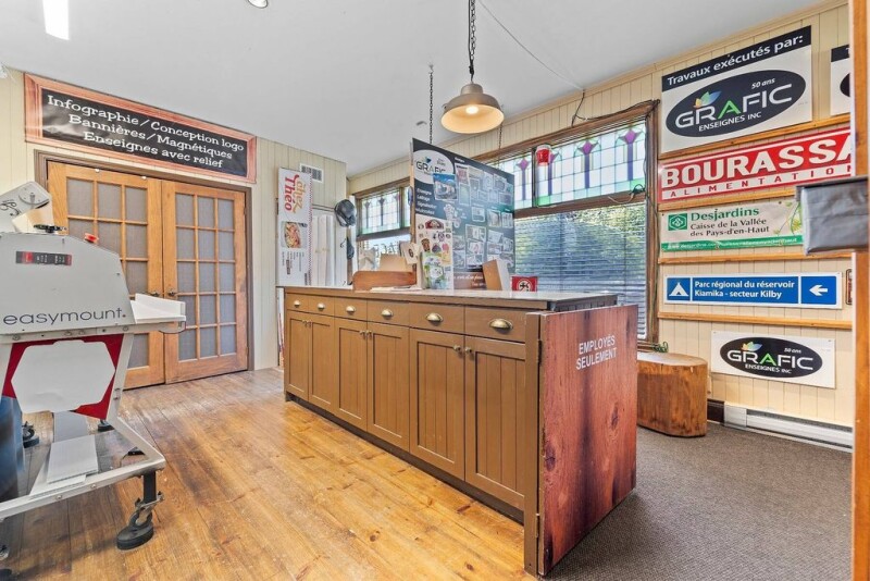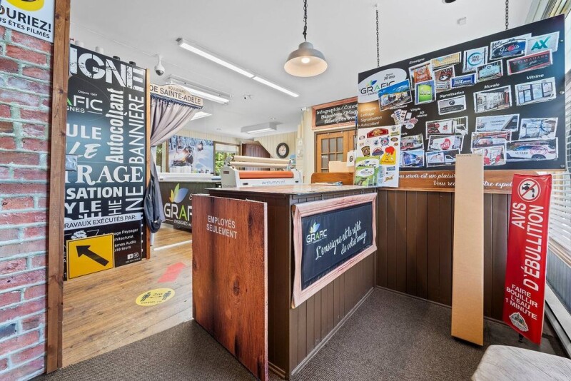 Commercial and residential building, strategically located on Highway 117, 1 km from Exit 76 of Highway 15. Attractive 2000 country-style construction with adjoining dwelling on 2nd floor, currently occupied by the Seller, who could possibly continue to live in it, depending on the Buyer's needs.