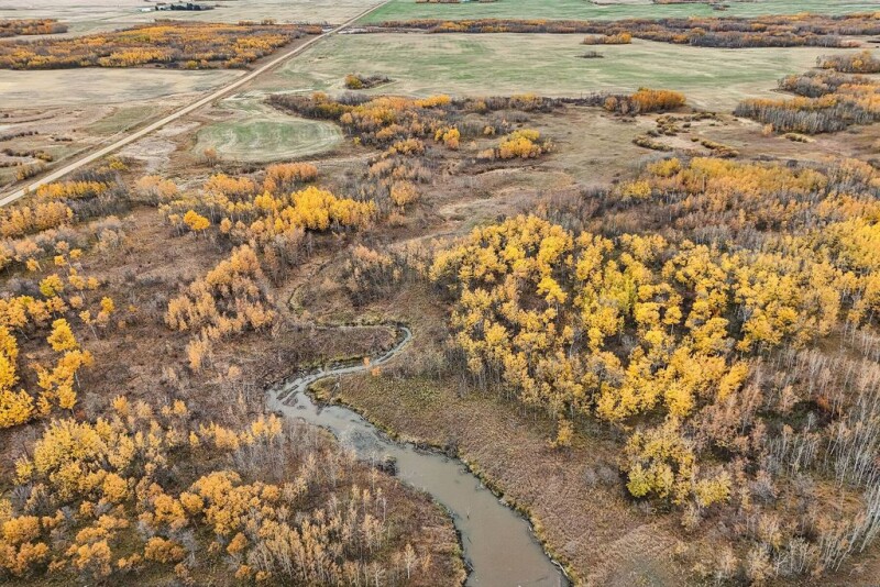 An exceptionally rare opportunity—780.28 acres of unspoiled Alberta beauty—an extraordinary legacy property spanning five contiguous quarter sections in the heart of Camrose County. This expansive and income-producing landholding is a rare find, combining the serenity of natural wilderness with the functionality of prime agricultural land. The landscape is a stunning mosaic of open cultivated fields, mature woodlands, natural wetlands, and a gently winding creek—offering a picturesque and ecologically rich setting that supports a wide range of uses. Zoned General Agricultural and accessible year-round via county-maintained roads, this property provides exceptional versatility for farming, outdoor recreation, hunting, private retreats, or conservation-based development. Nature lovers will be drawn to the abundant wildlife that roam the land—moose, deer, and waterfowl thrive in the property's diverse habitat, making it an ideal sanctuary for sportsmen or those seeking seclusion and connection with the land. Currently, approximately ~270 acres are cultivated and leased, offering immediate rental income, while an active surface lease and habitat retention agreement provide additional revenue streams. For those with a long-term vision, the property also offers subdivision potential across up to eight quarter sections, enhancing its investment appeal. Whether you are an investor, conservationist, farmer, or visionary looking to secure a private rural escape, this remarkable 780-acre holding presents an extraordinary opportunity to secure a large, diverse land holding in one of Alberta’s most scenic rural corridors. *Excepting thereout all mines and minerals*.