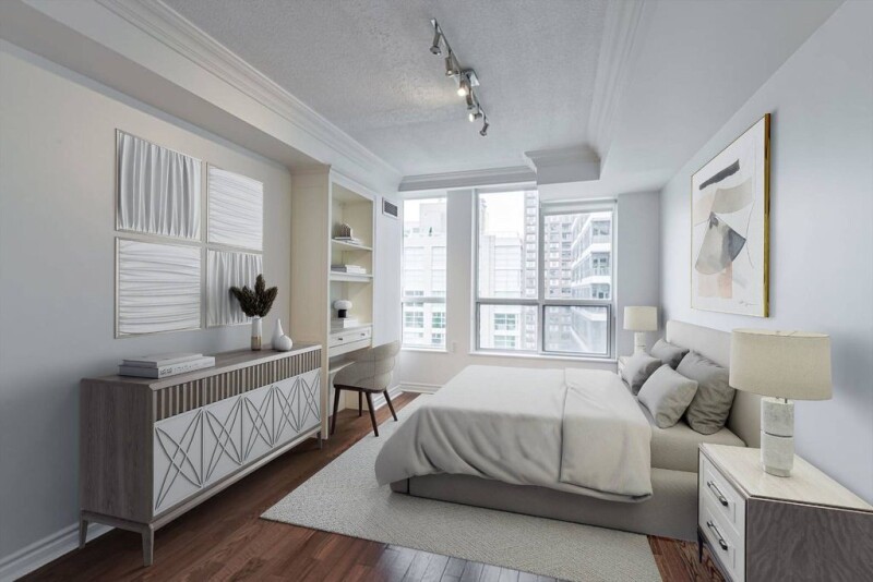 Gracious Rosedale condo on Bloor Street East! An absolute treasure featuring a welcoming foyer with front hallway closet. A spacious living area and open concept kitchen, perfect for both relaxation and entertaining. The generously-sized primary bedroom offers abundant closet space, enhanced with thoughtful closet organizers. The semi-ensuite washroom boasts marble flooring and a luxurious marble shower with marble flooring and built-in marble shower shelves. The Rosedale Ravine Residences is an exclusive building with only 91 suites. Residents enjoy the amenities, including a fully equipped gym, party room, library, sauna and convenient visitor parking. With 24-hour hour concierge. Perfectly situated near the Rosedale Ravine, vibrant Yorkville, Yonge & Bloor, and the subway, this location offers both serenity and convenience! Photos are virtually staged.