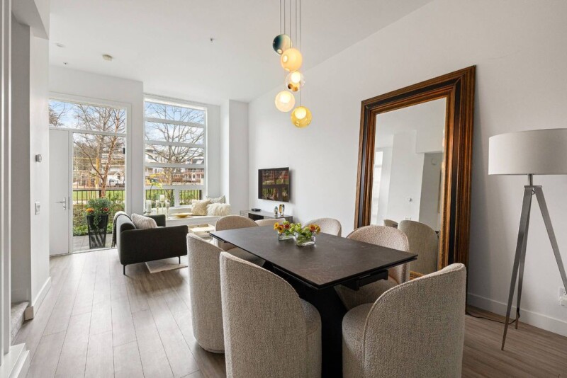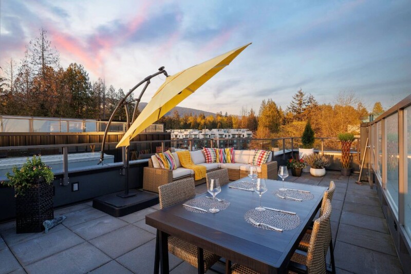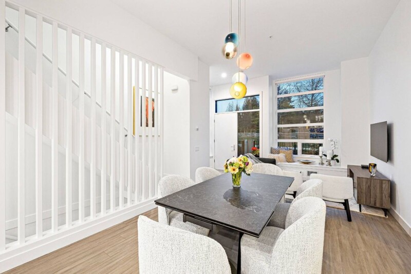 Located on the new Belle Isle Park, this stunning end-unit townhouse offers nearly 2,000 sq. ft. of bright, open living space, plus a private rooftop deck spanning an entire floor with breathtaking views of the North Shore Mountains, city, and Lions Gate Bridge. Built in 2022, this 3-bedroom, 4-bathroom home features soaring 11-foot ceilings on the main floor, a sleek modern kitchen with premium appliances and a wine fridge, air conditioning, and elegant finishes throughout. Enjoy the convenience of direct access from your private enclosed garage. Just minutes from Park Royal, Ambleside Beach, Edgemont Village, and Downtown Vancouver, this home perfectly blends luxury, comfort, and prime location.