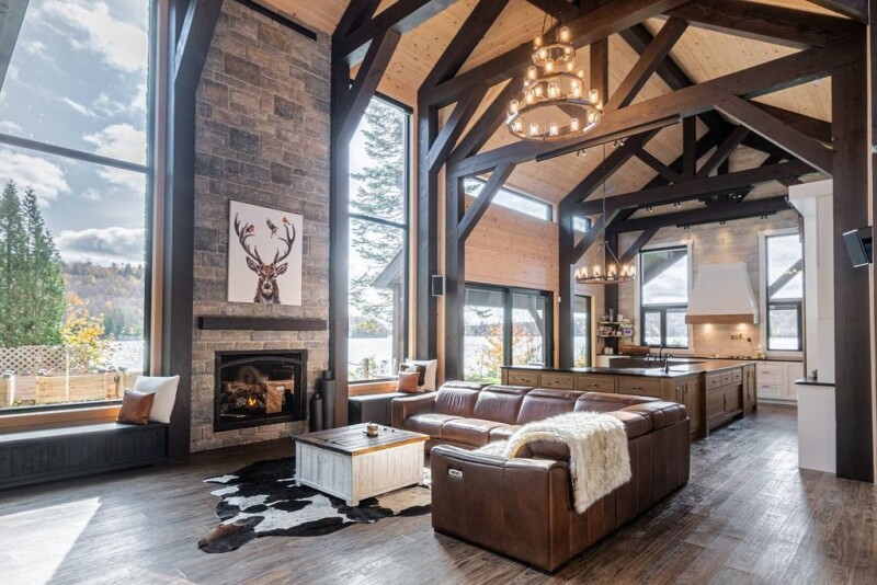 A domain on a peninsula on Lake Sergent, combining quality and authentic atmosphere. The private road guarantees serenity. The open-plan living area features 22' ceilings. Enjoy the comfort of heated floors on the main floor, in the bathrooms, the garage, the main entrance and the path leading to the outdoor spa. The gas fireplace in the living room creates a warm ambience. The exterior is perfect for entertaining and features a kitchen equipped with BBQ and Big Green Egg, as well as a spa and fire pit. Equipped with forced-air heating, generous fenestration reveals panoramic lake views. Several inclusions complete the picture.