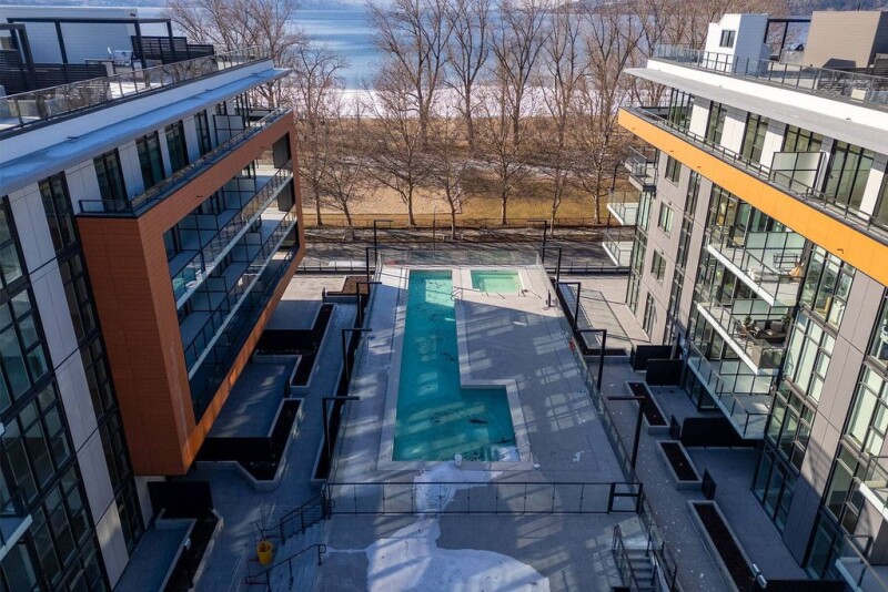 Welcome to Caban, Kelowna’s premier lakeside retreat, where luxury meets modern design. This beautiful one-bedroom, two-bathroom condo on the fourth floor offers 675 square feet of thoughtfully designed living space, complete with breathtaking mountain views, partial lake views, and a spacious deck. 9'6" high ceilings allow the oversized windows to flood the interior with natural light, seamlessly blending indoor comfort with the stunning Okanagan landscape. At Caban, the renowned CresseyKitchen sets a new standard for function and elegance. Designed for at-home chefs of all levels, this kitchen boasts porcelain slab backsplashes, quartz countertops, handmade Italian cabinetry, and JennAir appliances. Kohler fixtures, selected for their lasting quality, enhance the space, while thoughtful pantry and storage solutions ensure both beauty and practicality. The spa-inspired bathrooms feature luxurious tiling and high-end fixtures, offering a serene escape after a long day. Caban isn’t just about where you live, it's about how you live. Enjoy a morning swim in the 25-meter infinity pool, soak in the hot tub, or unwind in the Himalayan salt sauna. The 2,000 square foot fitness centre offers top-tier equipment and private workout stations. Outdoor living is elevated with private cabanas, fire tables, and a poolside kitchen perfect for entertaining or relaxing. Located just steps from Gyro Beach, this home offers the ultimate lakeside lifestyle. One secure underground parking stall is included.
