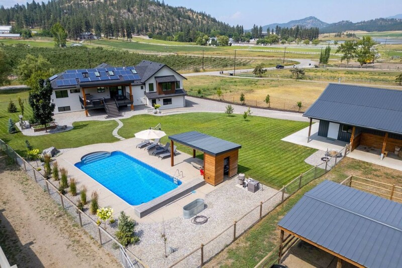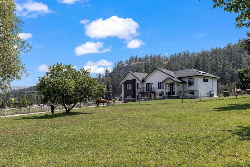 Experience a private retreat in the heart of Glenmore with this exceptionally renovated 3,600 plus square foot home on a 2.1-acre estate lot. This four-bedroom, four-bathroom residence is nestled against a forested mountainside, overlooking orchards and horse pastures. Inside, you'll find vaulted ceilings, skylights throughout the living space, and a cozy wood-burning fireplace. The kitchen features brand-new overlay appliances, a spacious island, and a large butler pantry, flowing seamlessly into the main living area. The property includes a 1,400 plus square foot insulated shop with gas heating, its own septic system, water hookups, and ceiling height for a mezzanine, outstanding workshop, or conversion into a carriage/guest home. Entirely fenced, the property has separate paddocks and a run spanning the length of the property, ideal for horses or other agricultural uses. The backyard is an oasis with a large covered patio leading to an inground pool with an auto-cover, and ample space for kids and pets. Additional highlights include a three-car garage, home gym, large office space, and full solar panel roof package. This is a polished estate property in an outstanding location. Don’t miss this unique opportunity—schedule a viewing today and experience the luxury this home has to offer.