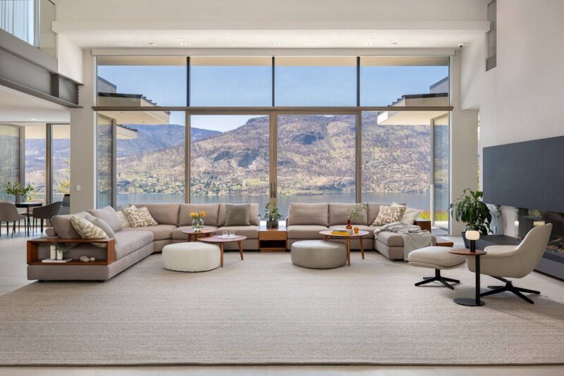 Nestled in exclusive Sheerwater, Mont des Cieux the prestigious 2023 Home of the Year awarded by the Okanagan Housing Awards of Excellence, offers the ultimate lakefront living experience. This luxurious 10,000SF custom residence is strategically designed to provide unparalleled privacy and breathtaking views of Okanagan Lake. Constructed primarily of steel, concrete, and glass, this home radiates a sophisticated warmth. The glass-enclosed elevator seamlessly connects the various levels. The expansive great room, featuring soaring ceilings and walls of windows, fills the space with natural light, creating a serene ambiance. Step outside to the infinity pool overlooking Okanagan Lake or find tranquility in the back hillside seating area beside a tiled pond and waterfall, both designed for your relaxation and enjoyment. With cutting-edge mechanical systems, solar panels, and a fully-automated Crestron system, this visionary masterpiece stands out in the Okanagan region. Imported triple-pane windows from Austria, glass panels from Germany, millwork from Italy, furniture from Australia, and gym equipment from Poland all ensure this home is of the highest international standard. Boasting three primary suites, a state-of-the-art theater, and a wine cellar capable of storing over 300 bottles, Mont des Cieux offers a lifestyle of unparalleled luxury and sophistication. Embrace the Okanagan lifestyle with the benefit of lakefront access and your boat slip at the private wharf.