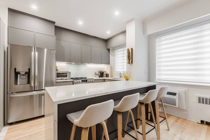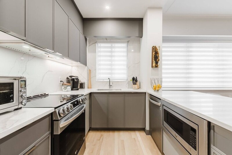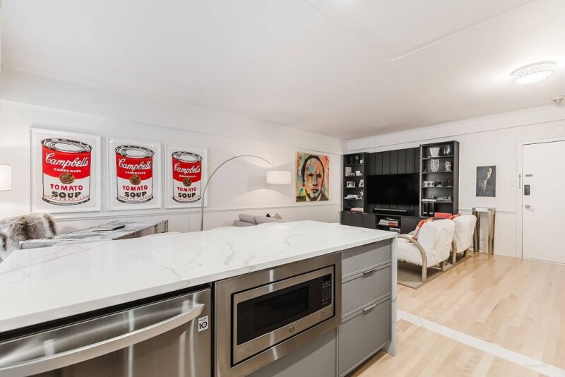 Golden Square Mile New York style boutique building with doorman/concierge 24/7. Large renovated one bedroom unit with luxury kitchen, high end appliances, soaker bathtub and in suite laundry. Maintenace fees include concierge, property taxes, heat and hot water.