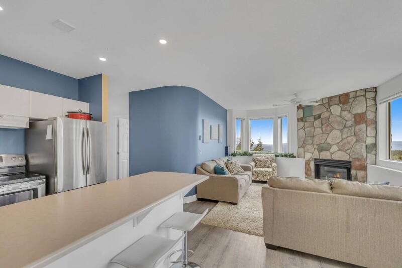 Incredible three bedroom two bathroom at Chateau on the Ridge at Big White Ski Resort! Perfectly located along the ski run, creating the perfect ski-in/ski-out access, this unit showcases a bright and open concept main living area. Nestled in the corner is a cozy fireplace surrounded by windows to showcase the stunning view. Flow directly into the spacious kitchen with stainless steel appliances and extra seating at the counter bar. Large dining area is great for families and entertaining. Other stand out features are the spacious bedrooms, in-suite laundry, and secure underground parking. After a day on the slopes, take a quick walk to the Village or relax in one of five outdoor hot tubs in the complex. This unit ticks all of the boxes. Live where you play! Exempt from Foreign Buyer Ban, Foreign buyers tax, speculation tax, empty home tax, and short term rental ban. Take advantage of the newly expanded accessibility to Big White, with direct flights from Los Angeles, Toronto, and Montreal via Alaska Airlines. Just an hour from YLW, immerse yourself in a winter wonderland renowned for the best snow in North America.