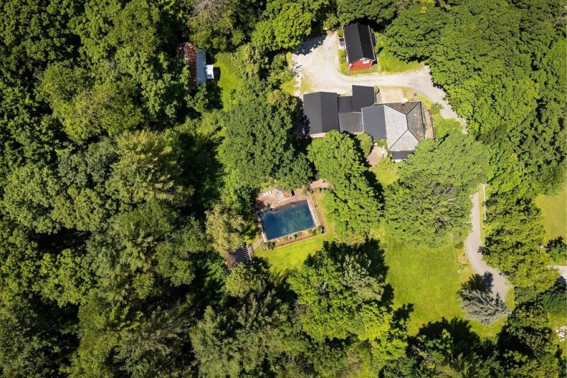 Simply unique! Located at the end of a dead-end street, this cozy little estate is ideal for large families or those who like to entertain, with its 2 residences. Over 11.5 acres of land adorned with mature trees and beautifully landscaped with in-ground pool and adjacent pool house. Secondary buildings include a stable, double garage and shed. Incomparable charm and character! Located in the heart of Richmond village, only 30 minutes from major cities such as Sherbrooke, Victoriaville and Drummondville. A must-see home from yesteryear!.