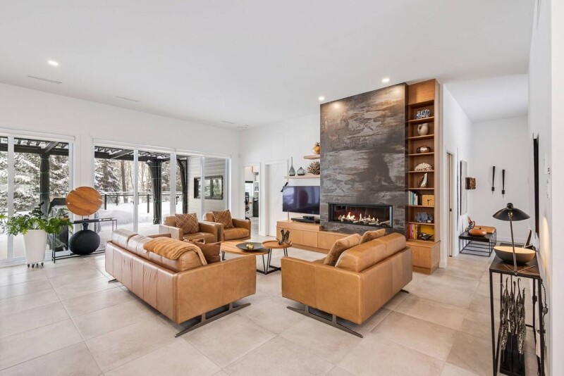 Discover this stunning bungalow, nestled on a magnificent wooded lot of 32,821 sq. ft., offering exceptional privacy thanks to its mature trees. Its contemporary design, abundant windows, and high-end materials create an elegant and refined atmosphere. This brand-new home, covered by the GCR warranty, features four spacious bedrooms, two full bathrooms, and a large garage with multiple possibilities. Enjoy absolute comfort with heated floors and a fireplace. Outside, take advantage of a heated in-ground pool and a terrace covered by a Sunlouvre pergola. A unique living environment combining luxury, nature, and modernity!.