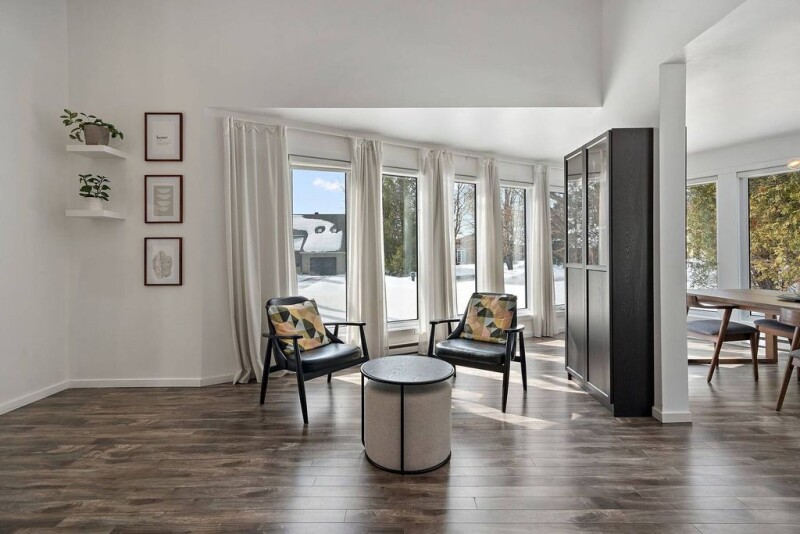 Discover this uniquely designed property, nestled on a vast 15,384 square foot lot, fully fenced, bordered by mature hedges and with no rear neighbors for absolute privacy. Located in a quiet and sought-after area of Rosemère, it offers easy access to Highway 640 and is close to many schools, parks, and amenities. With its 3 bedrooms, 2 bathrooms, and spacious, bright spaces, this magnificent home will delight you from the first glance. You're sure to fall in love!.
