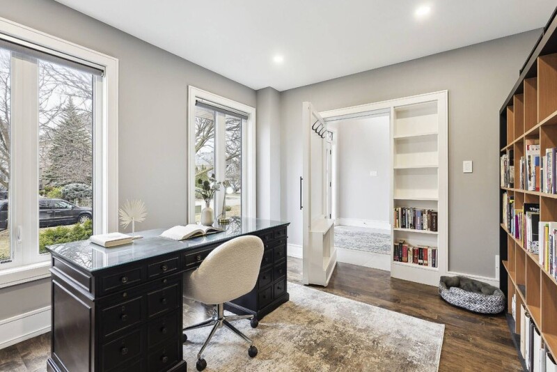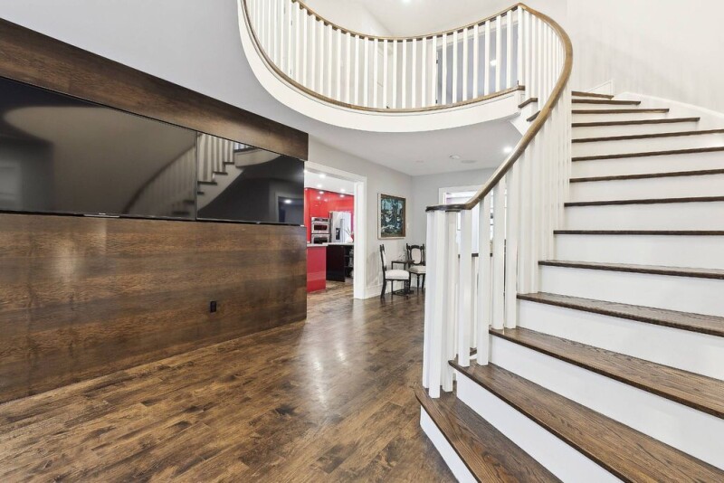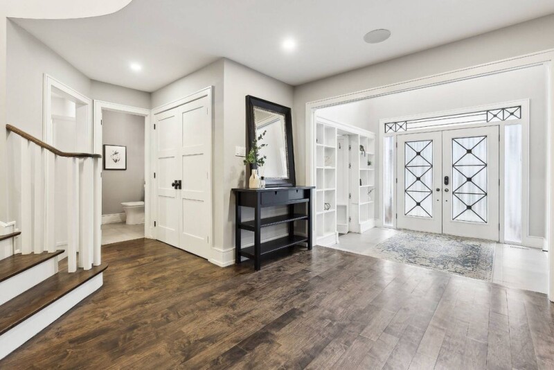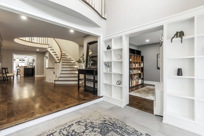 Experience unparalleled luxury in this stunning 4-bedroom executive home, perfectly situated on an extra-wide, deep lot in the prestigious Bayview Hill community. This home showcases elegant maple flooring, a grand oak staircase, an elegant hallway, and a hidden office off the foyer that offers ultimate privacy, space for organized shelving, and a serene workspace perfect for productivity or relaxation. The heart of this home is a chef-inspired kitchen featuring a Bosch induction cooktop, built-in stainless-steel appliances, a spacious island and premium Caesarstone countertops. Indulge in your own custom hand-built coffee bar, complete with a live edge Mappa Burl finish and top-tier water filtration. The primary suite is a true retreat, featuring a charming Juliette balcony that invites fresh air and natural light, a spa-like 5-piece ensuite for ultimate relaxation, and a generous walk-in closet for ample storage. The spacious bedrooms in this home offer comfort and style, with the added convenience of a second-floor laundry room for effortless daily living. In the basement, enjoy entertainment like never before in the fully soundproofed home theatre, equipped with a wired 7.1 surround sound system and plush reclining seating. Stay active in the home gym, designed with premium features like battle rope and TRX mounts, dual TVs, and synchronized audio. The finished basement includes a full second kitchen, walk-in wine cellar, and cold pantry, perfect for entertaining. Smart home features abound, including powered blackout blinds, Nest devices, a whole-home sound system, and extensive Lutron lighting controls. A rare 4-car tandem garage with a rear door provides seamless backyard access. Located in a top-rated school district, this remarkable home offers refined living at its finest in sought-after Bayview Hill.